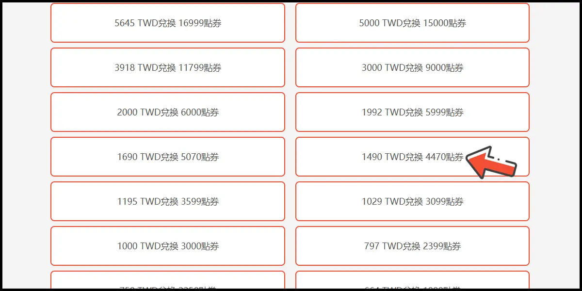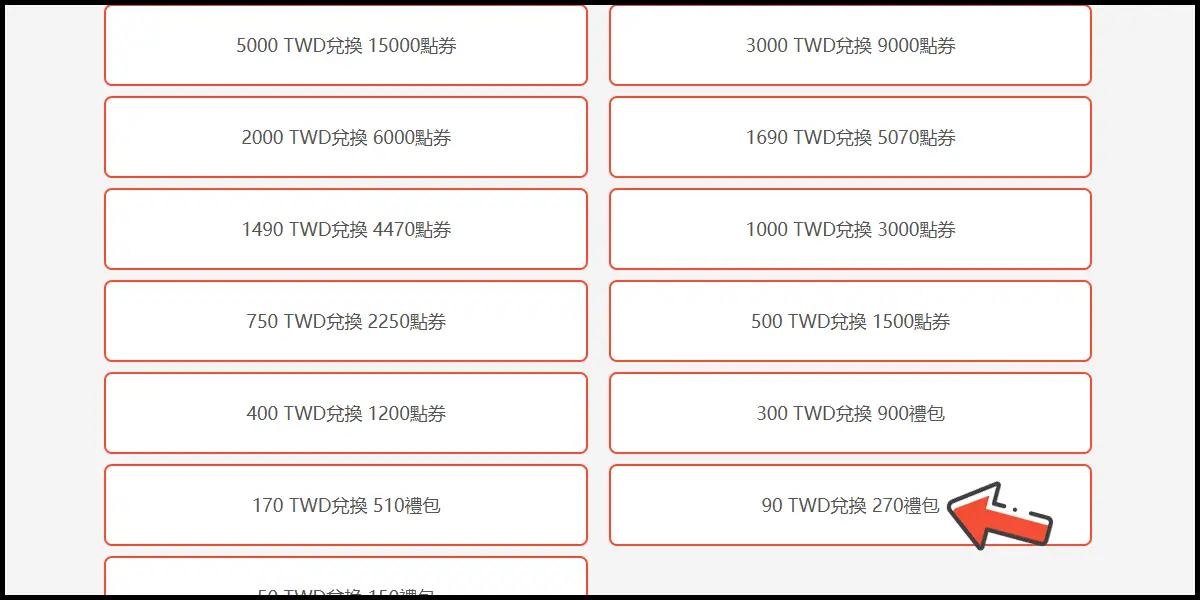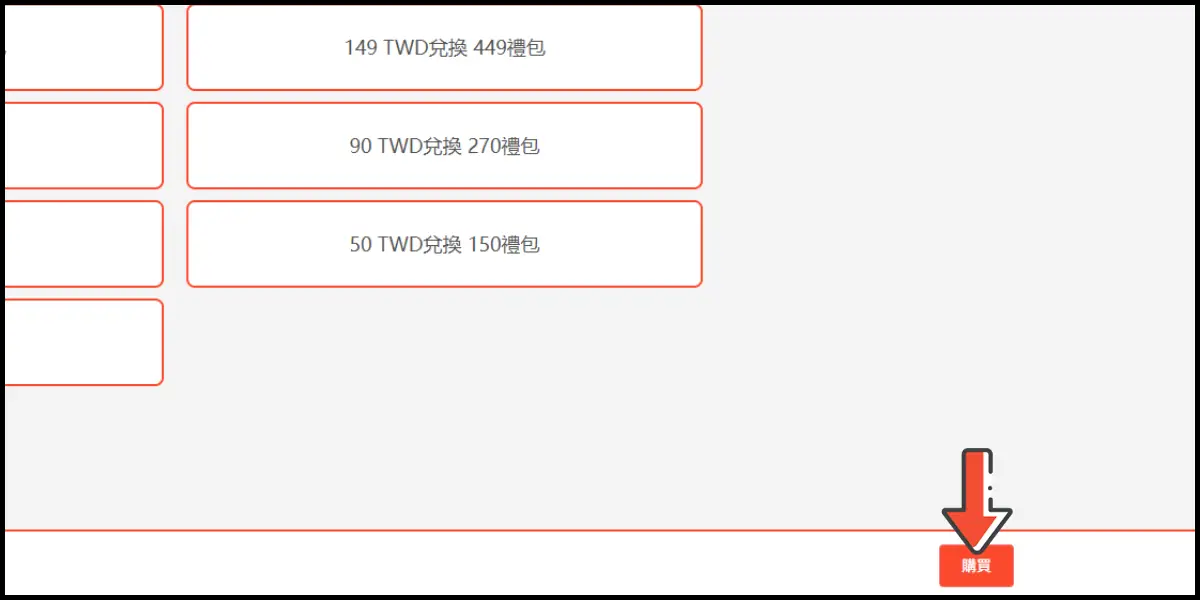 選擇儲值金額,選擇完畢後點選右下方「購買」前往儲值。