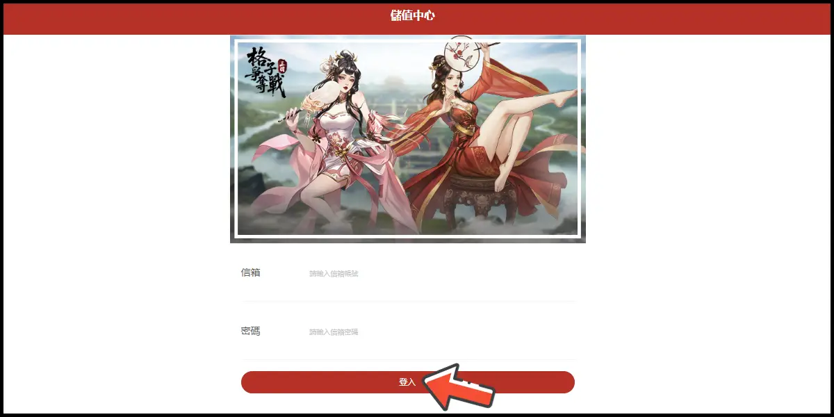 前往儲值網站後,登入你的遊戲帳號。