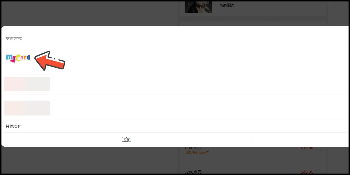 支付方式選擇「MyCard」。