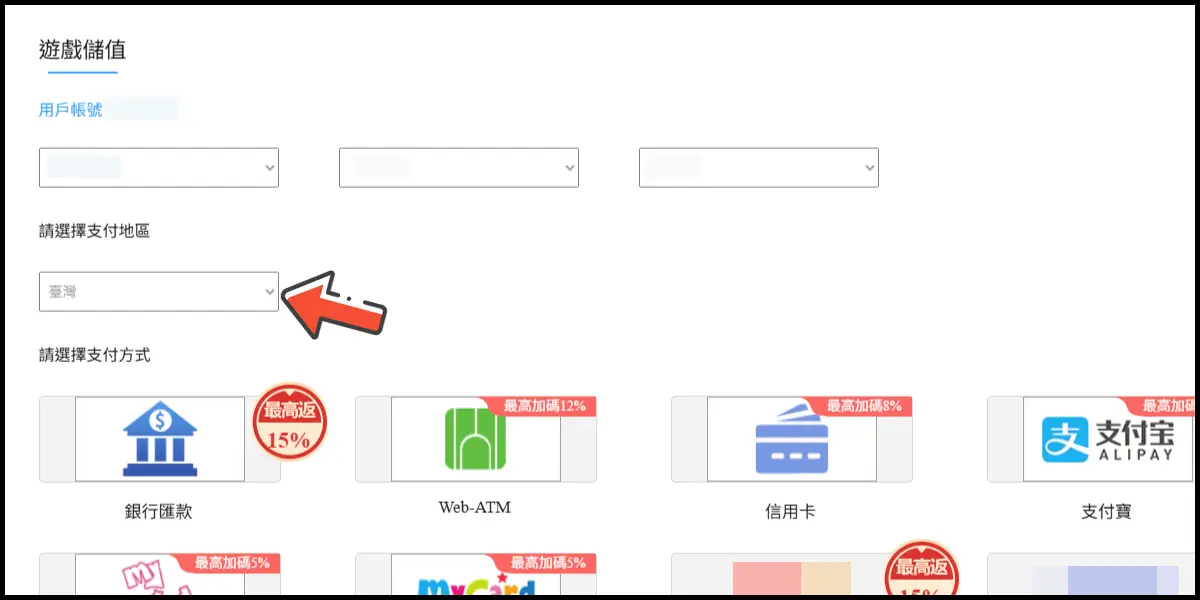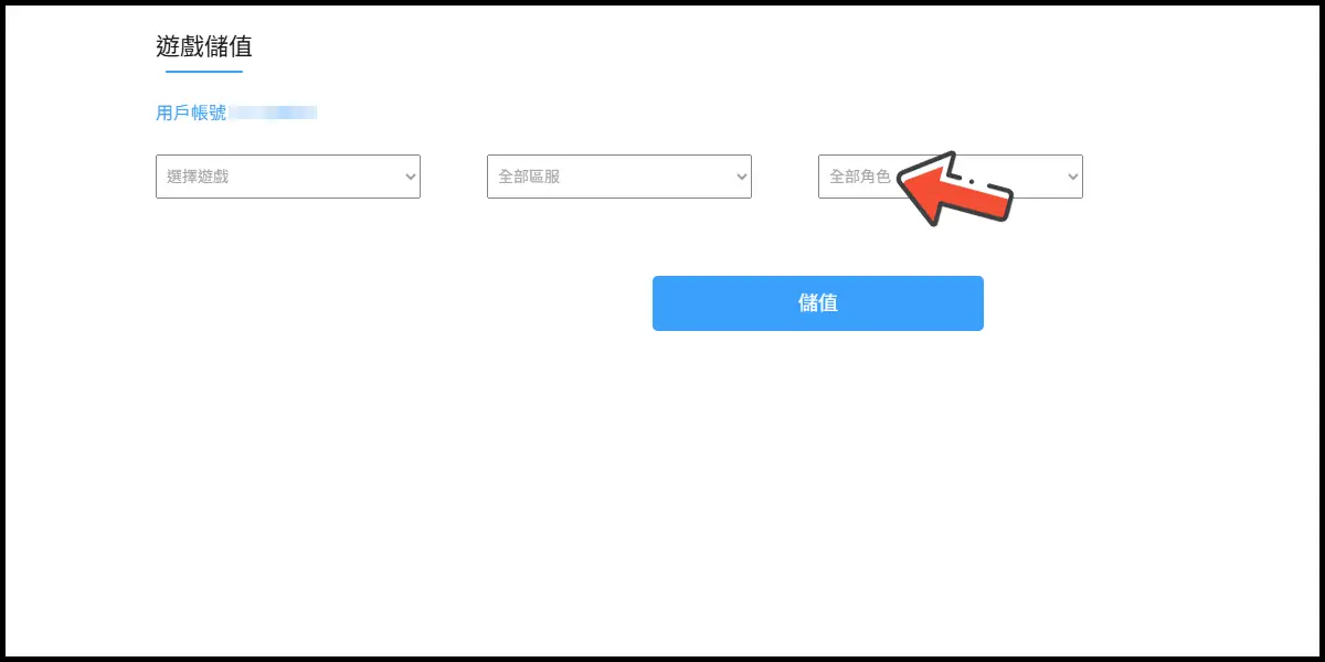 前往儲值網站後,登入你的遊戲帳號並選擇欲儲值的遊戲角色。