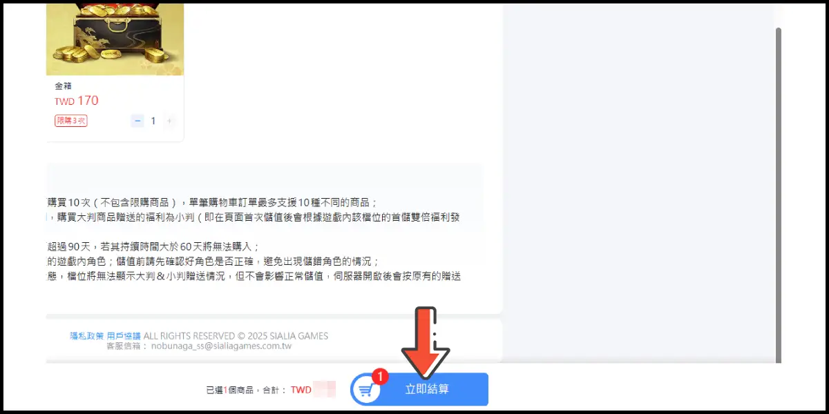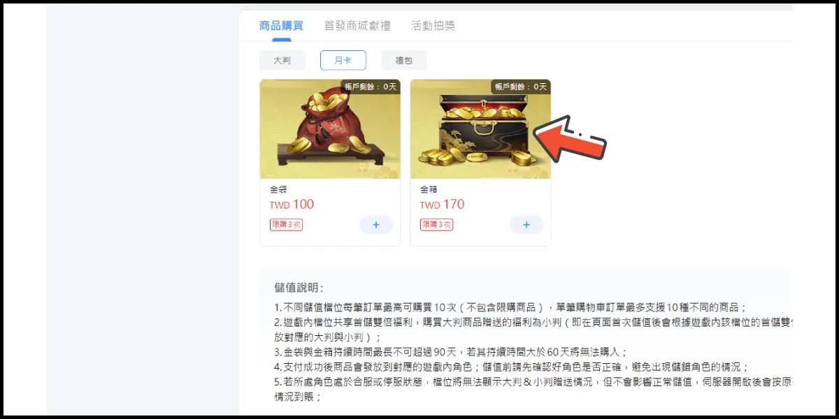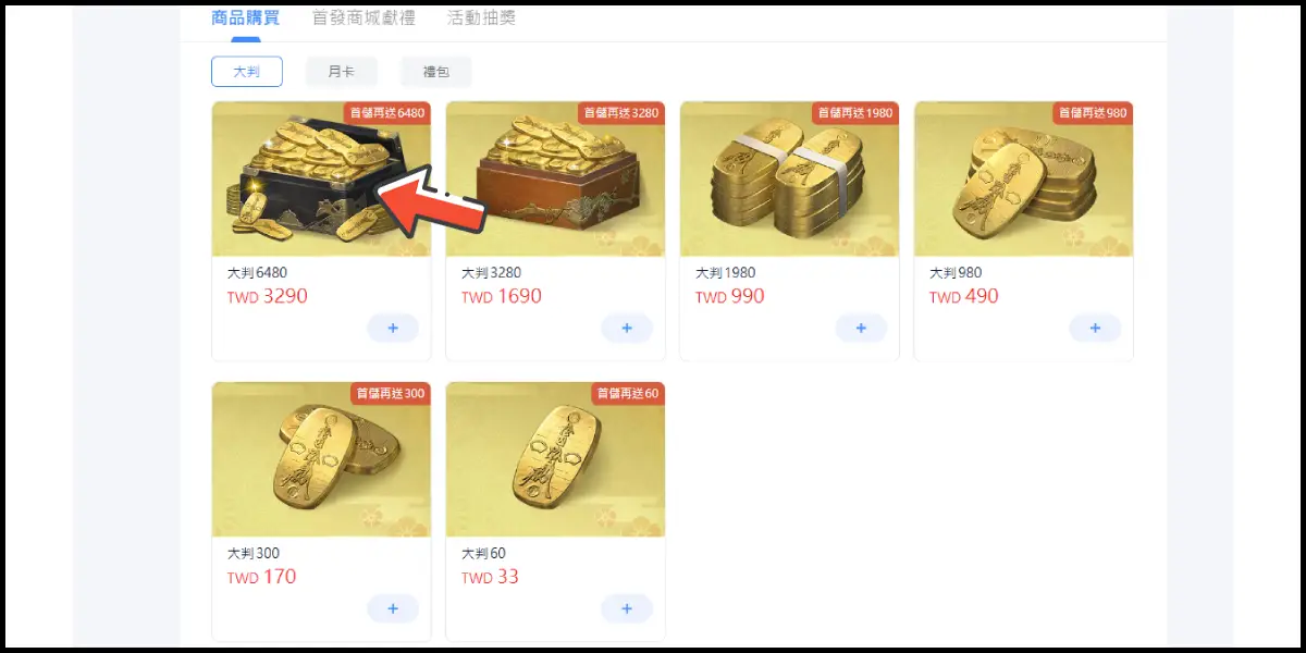 選擇您想購買的儲值商品(這邊商品以大判為例)。