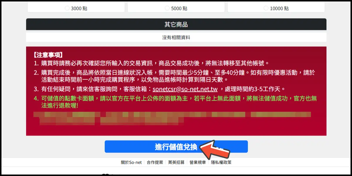 選擇儲值金額,選好後往下滑點選「進行儲值兌換」按鈕。