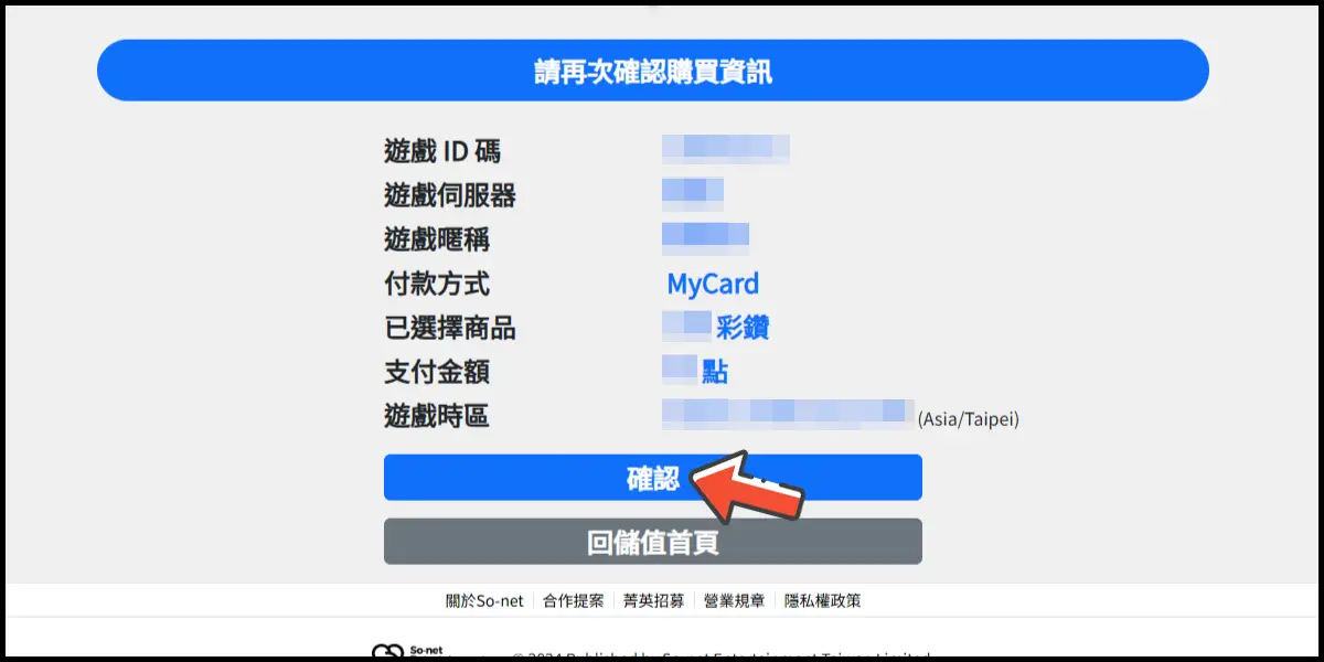 檢查購買資訊無誤,沒問題後按下「確認」按鍵。
