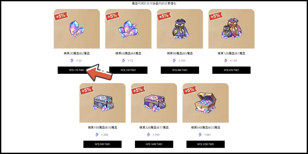 點選「魔晶」,並選擇儲值商品。