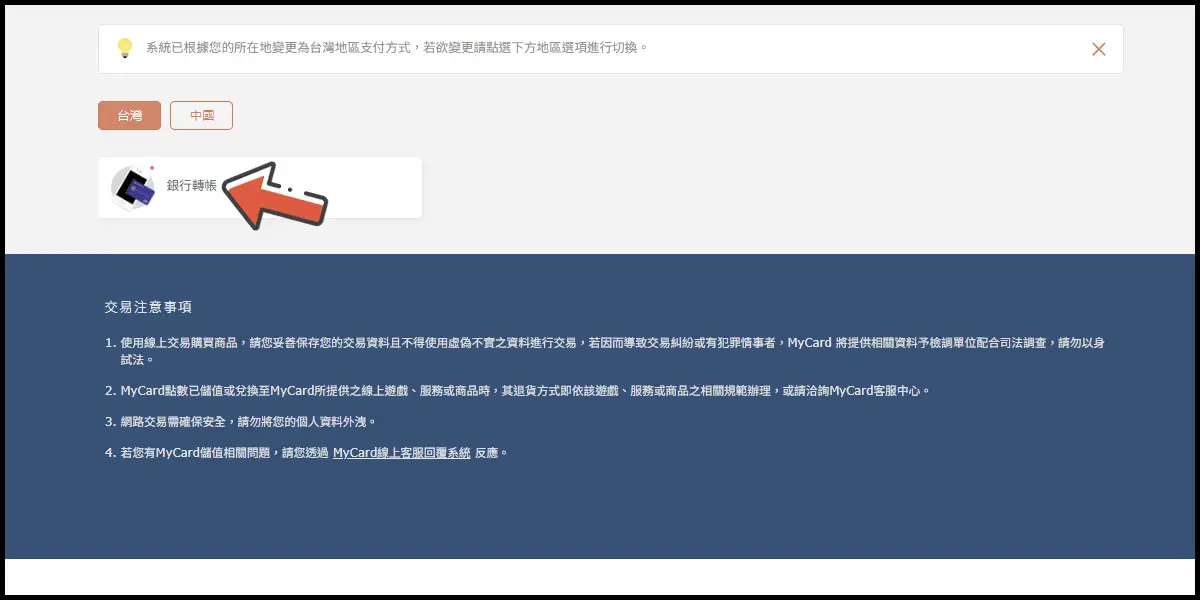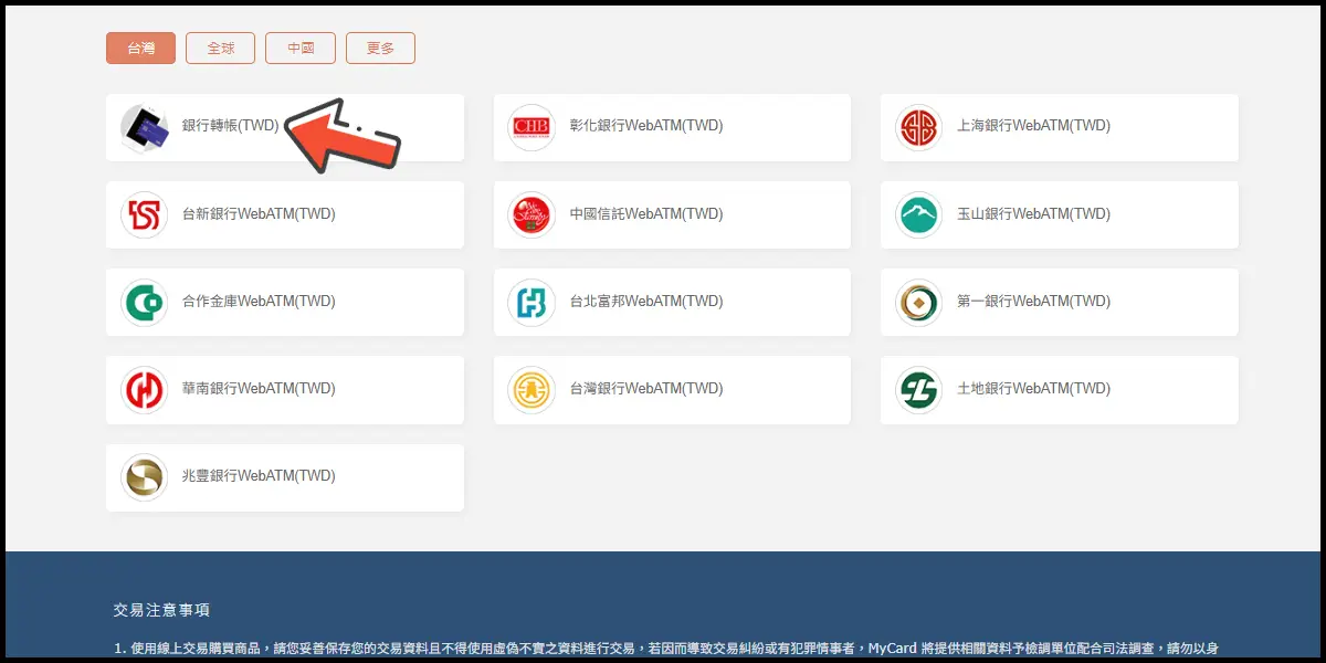 付費類別選擇銀行轉帳,並選擇您的銀行服務(這邊以銀行轉帳為例)。