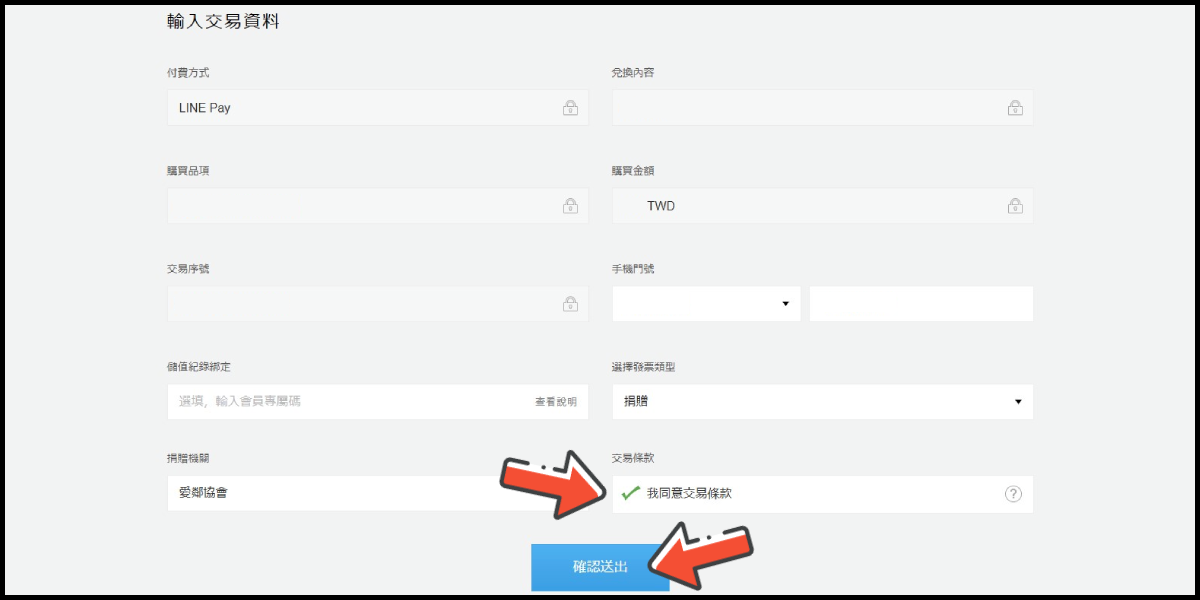 輸入你的手機門號、選擇發票開立方式與勾選同意交易條款按下同意,並確認明細無誤後確認送出。
