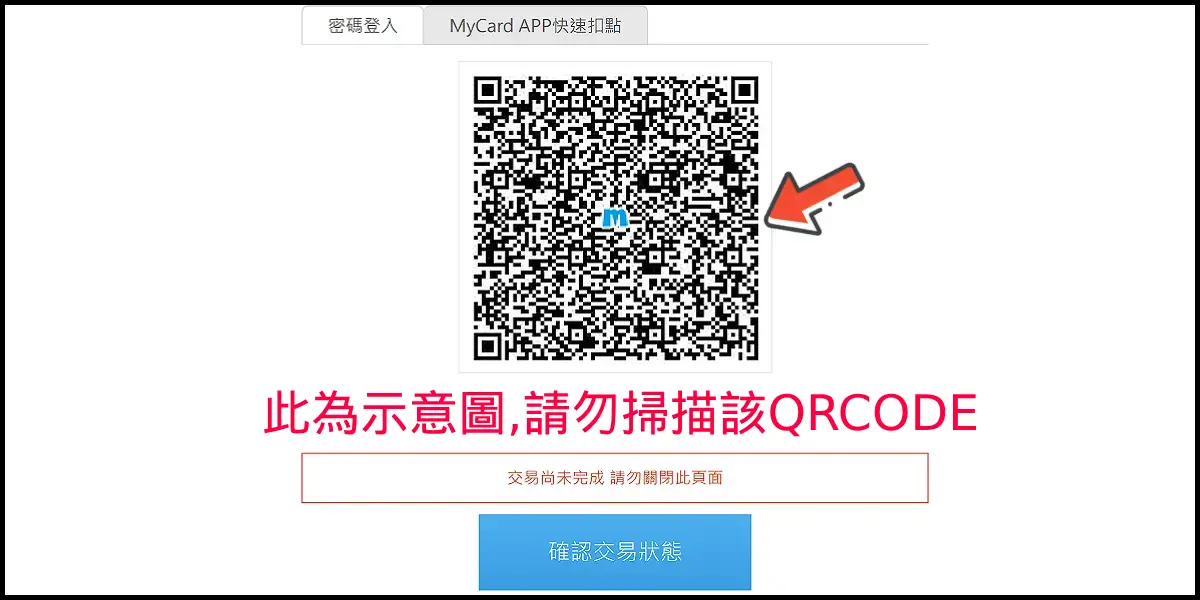 點選MyCard APP快速扣點後,打開APP,掃描頁面上的QR CODE儲值。(非掃描此頁面QR CODE)