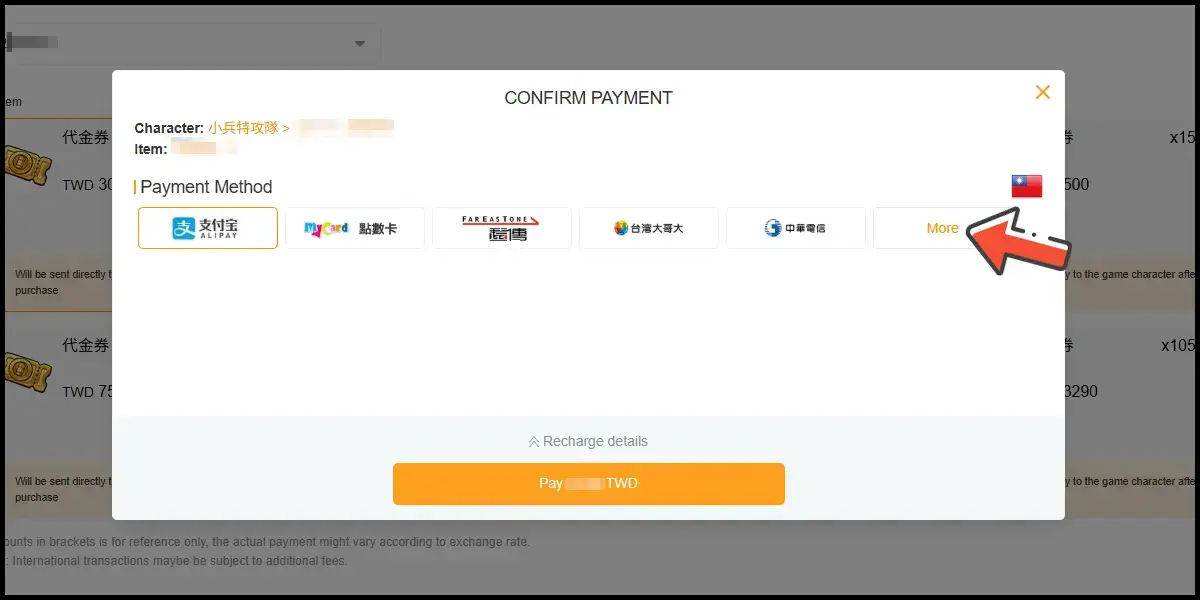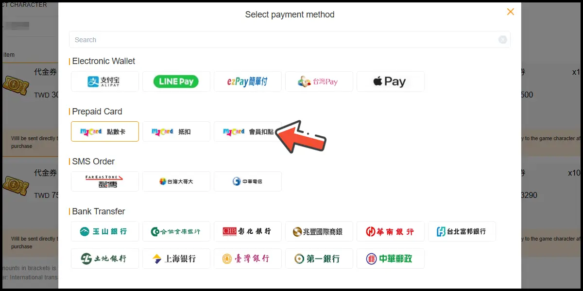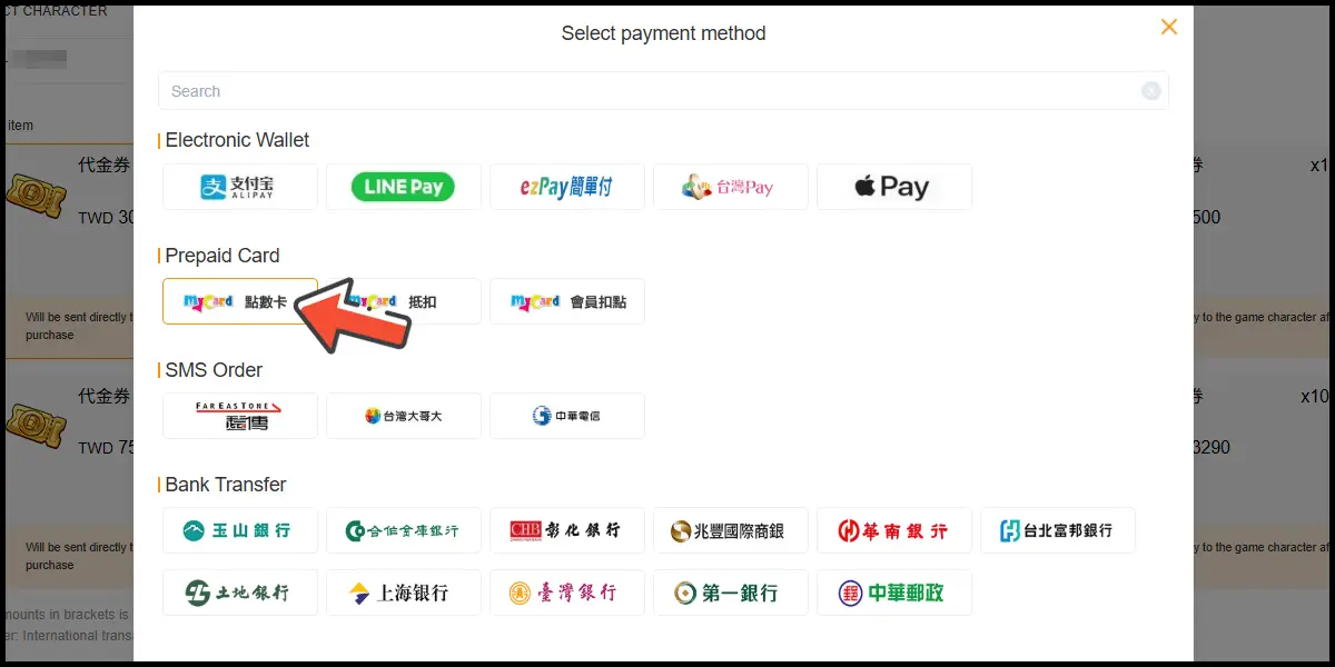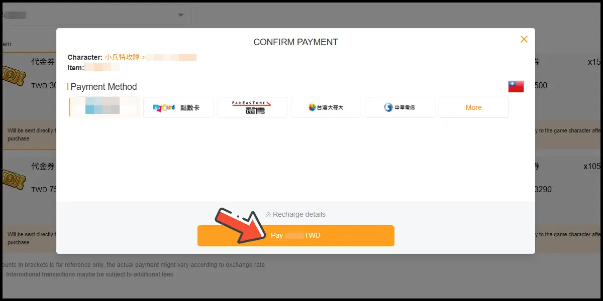 付費方式選擇「MyCard點數卡」,確認沒問題後按下下方的「Pay」。