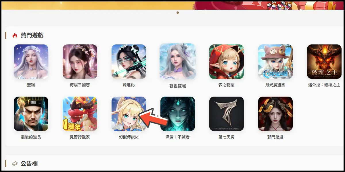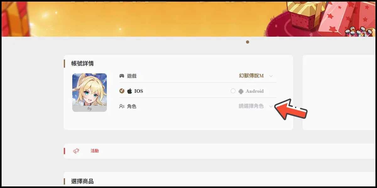 前往儲值網站後,遊戲選擇「幻獸傳說M」,並登入你的遊戲帳號。