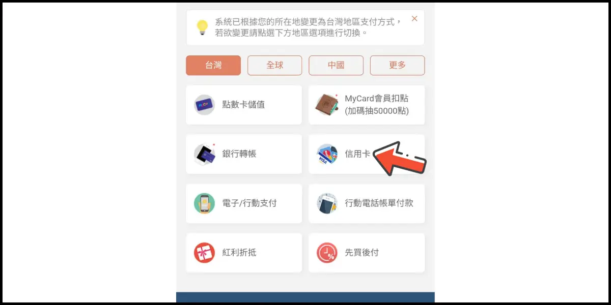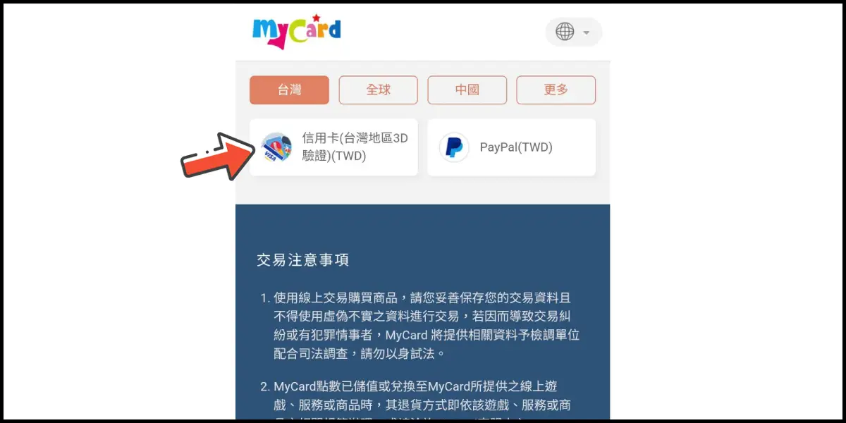 付費類別選擇信用卡、信用卡(台灣地區3D驗證)。