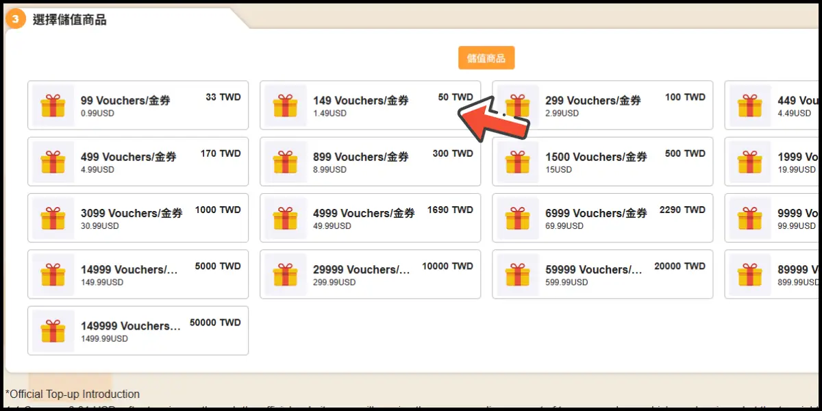 選擇儲值金額。