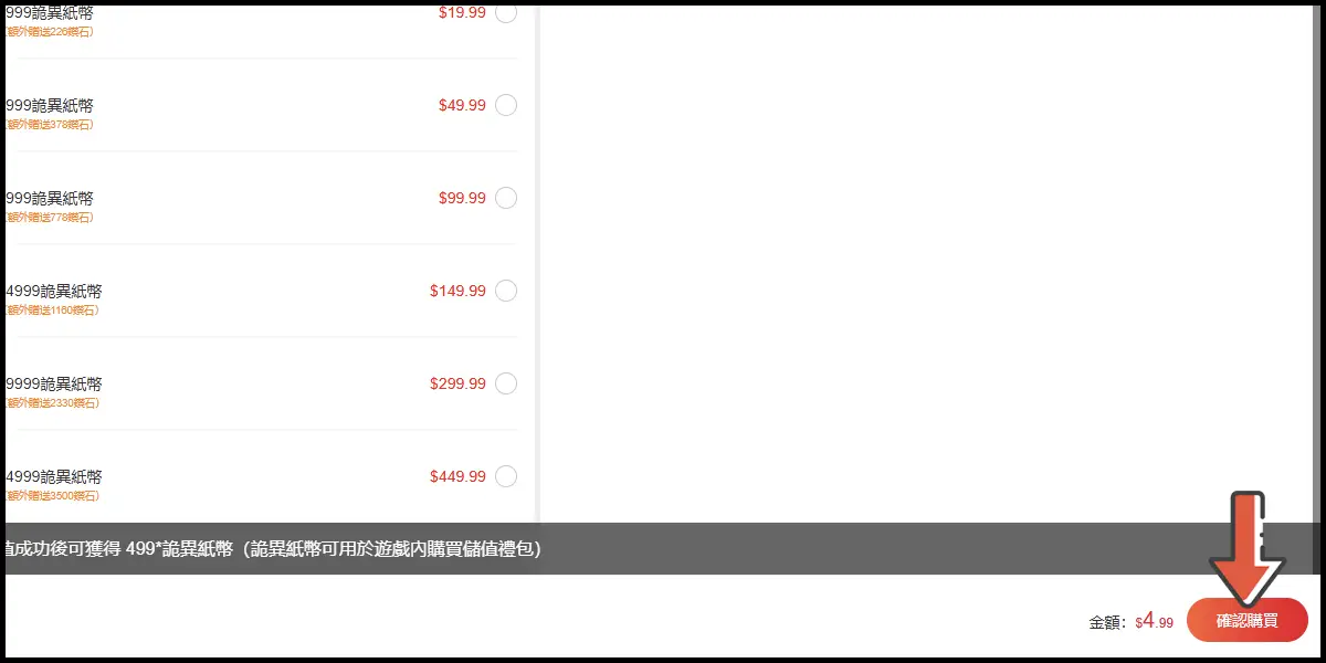 選擇儲值商品。