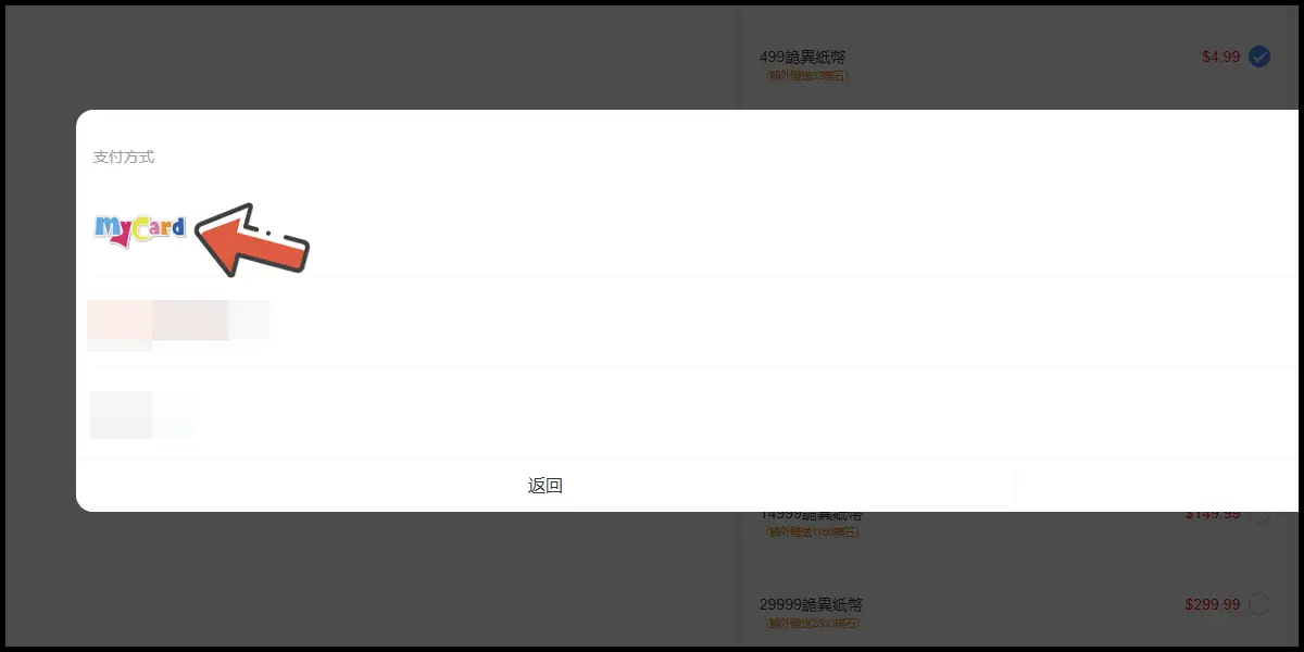 確認商品後點擊右下方「確認購買」,支付方式選擇「MyCard」。