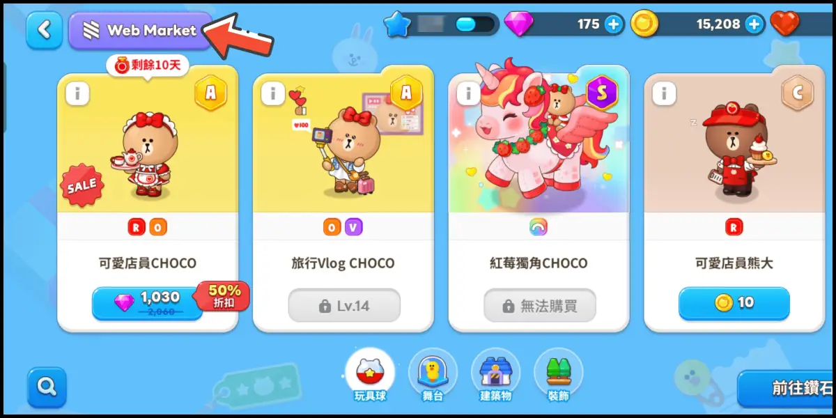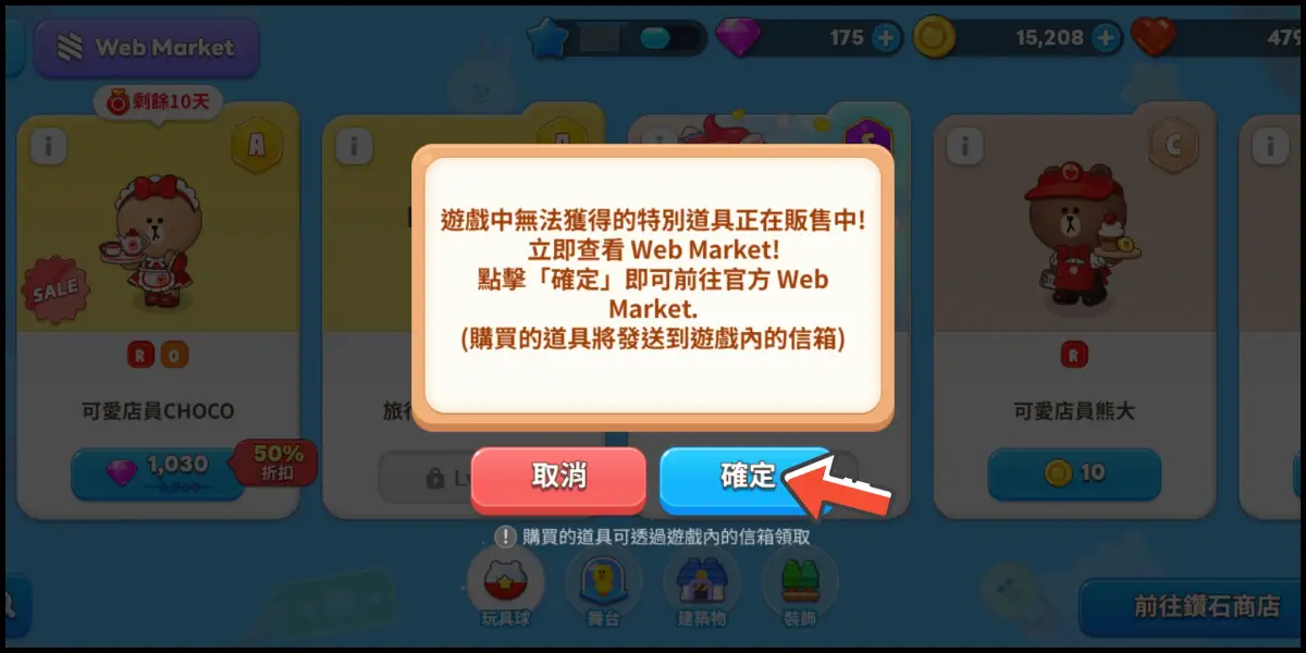 點擊左上角「Web Market」網頁商店圖示,並點選「確認」前往儲值網站。