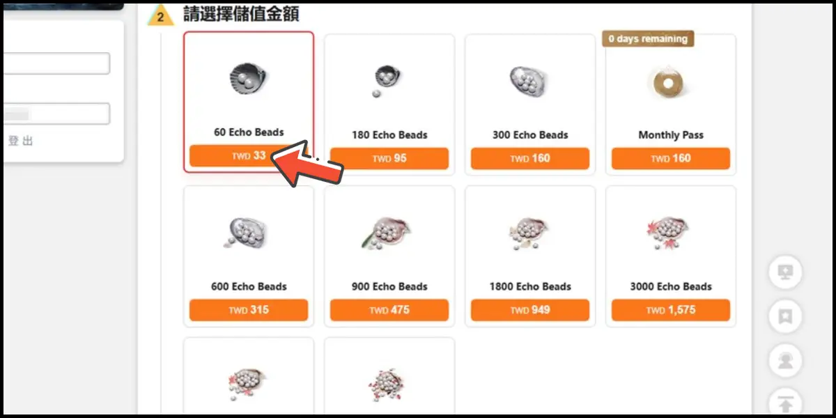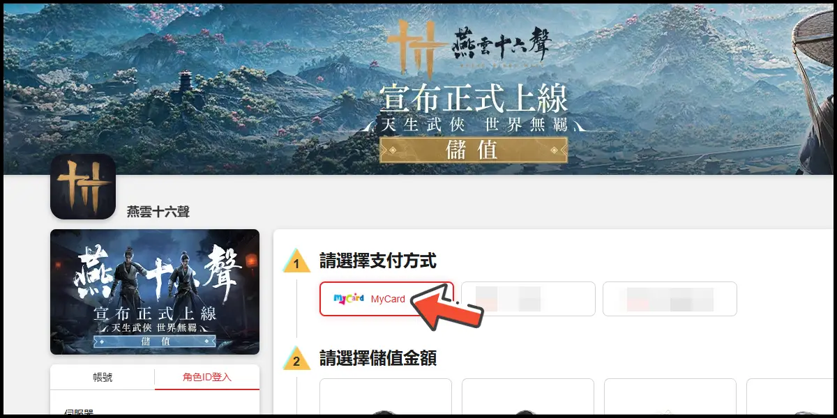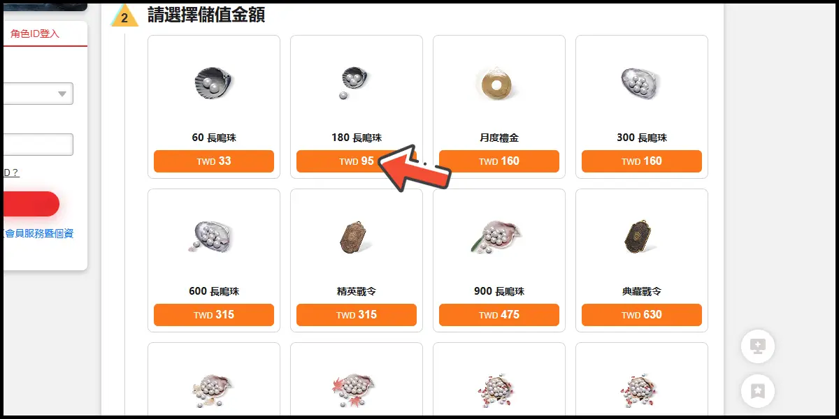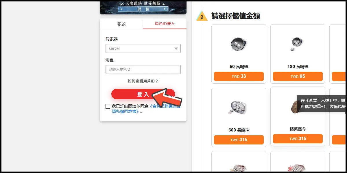 前往儲值網站後,登入你的遊戲帳號。