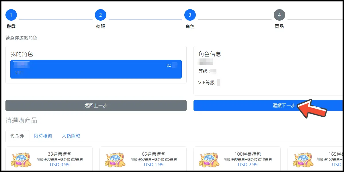 點選「繼續下一步」,確認遊戲帳號無誤後,再點一次「繼續下一步」。