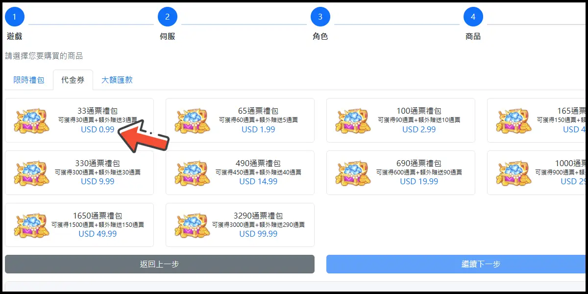 前往儲值網站後,登入你的遊戲帳號,並點選右方「儲值」按鈕。