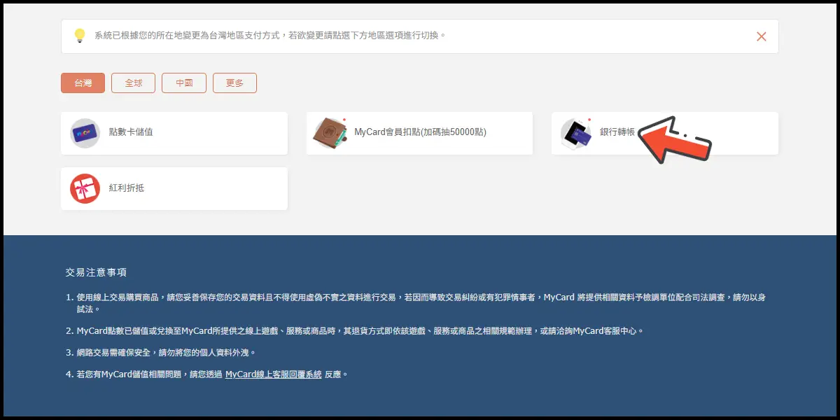 選擇您想要的轉帳服務(這裡以「銀行轉帳」為例)。