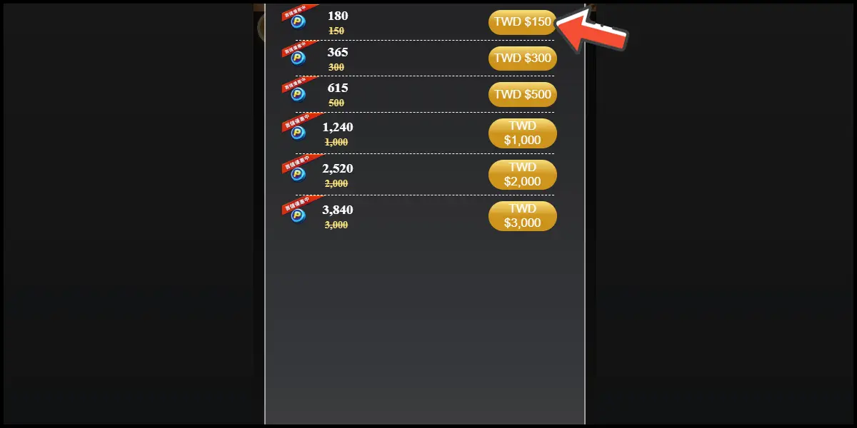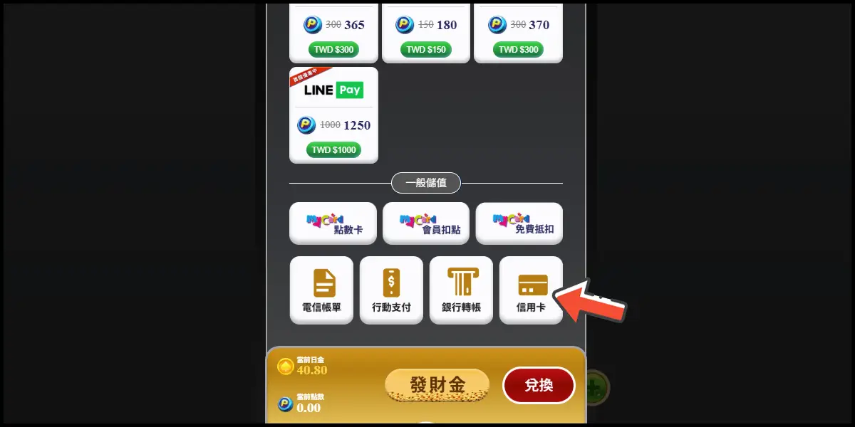 選擇「MyCard點數卡」,並選擇儲值品項。