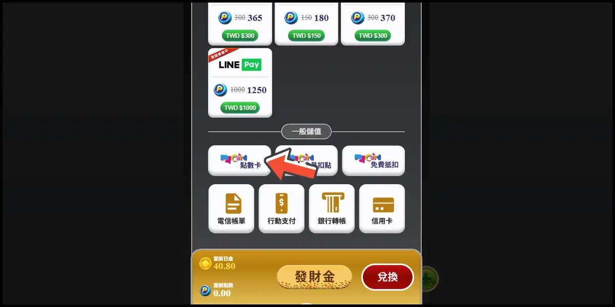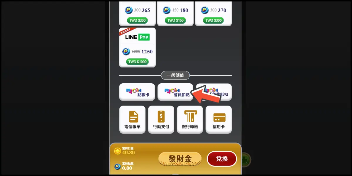 選擇「MyCard會員扣點」,並選擇儲值品項。