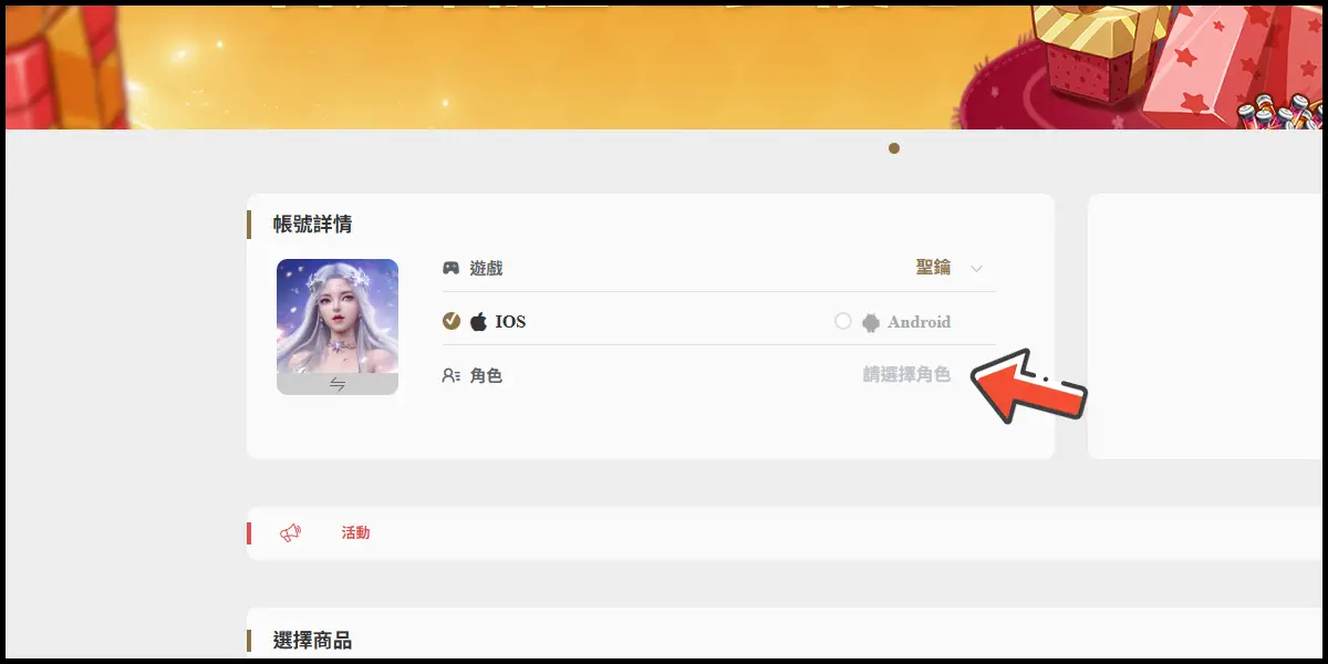 前往儲值網站後,遊戲選擇「聖鑰」,並登入你的遊戲帳號。