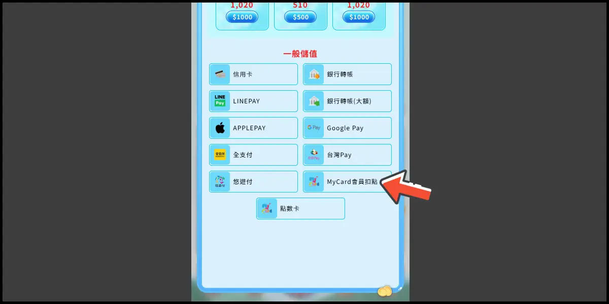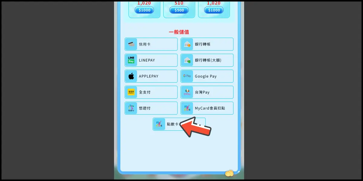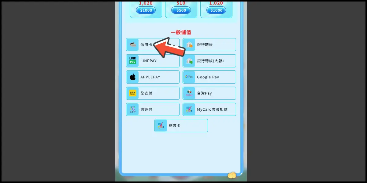 選擇儲值金額。