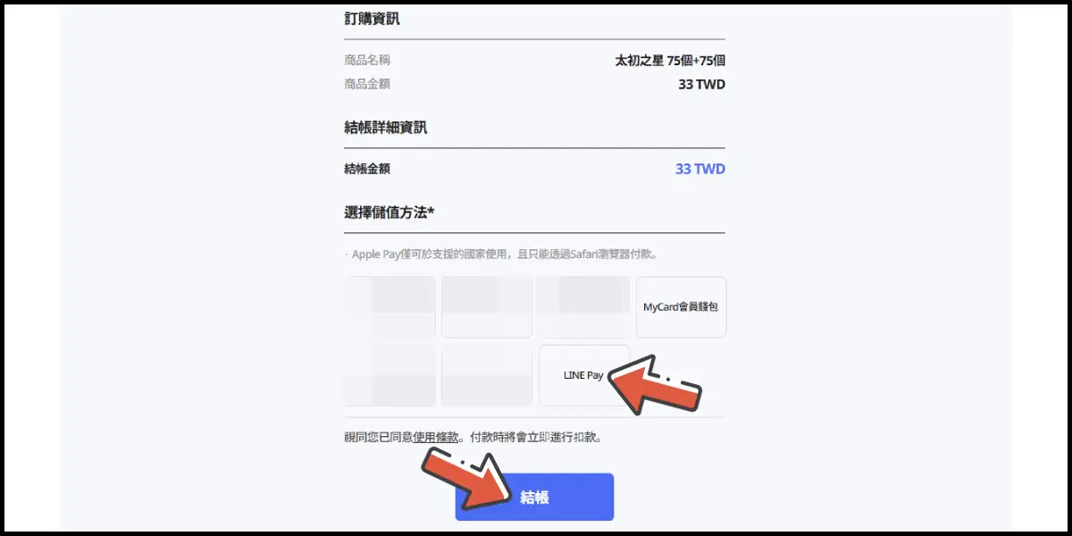 選擇「LINE Pay」,並點擊下方「結帳」。