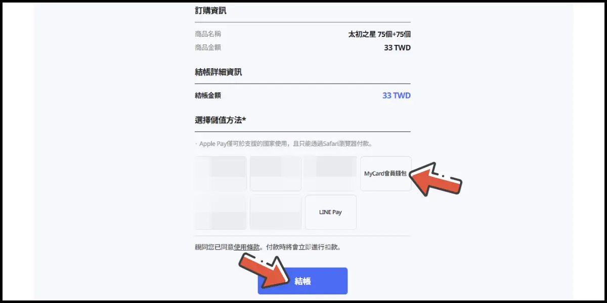 選擇「MyCard會員錢包(扣點)」,並點擊下方「結帳」。