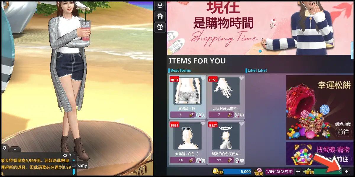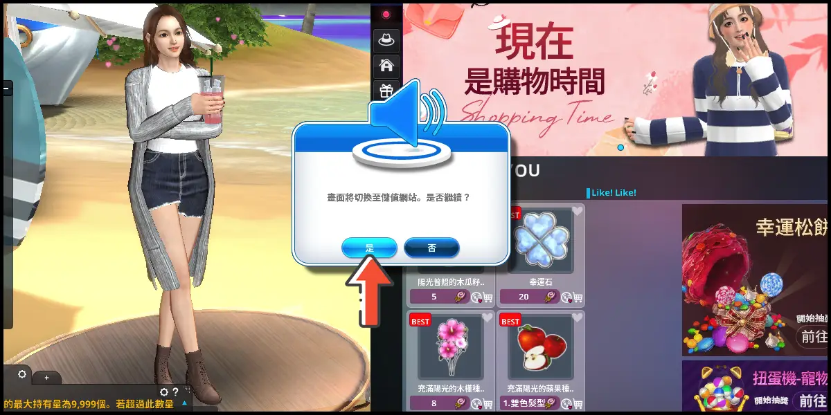 點擊下方「商城」圖示,並點擊右下角星幣旁邊的「+」,再彈出的視窗點選「是」。