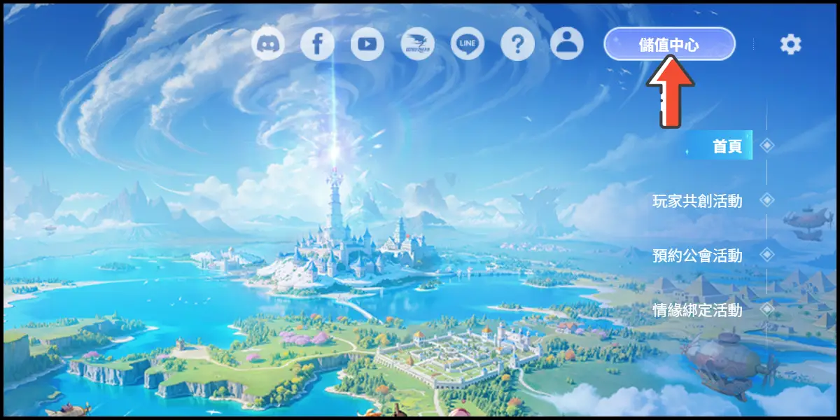 前往官方載點下載PC端遊戲,登入你的遊戲帳號後點選右上方「儲值中心」。