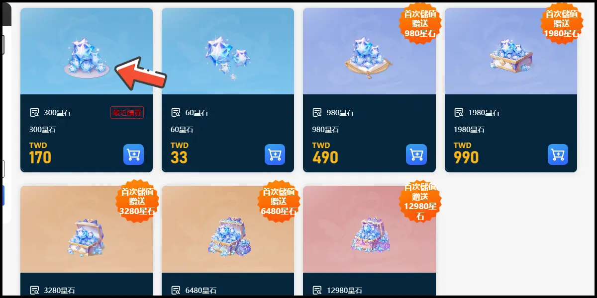 選擇儲值商品。