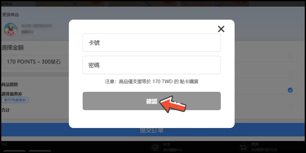 選擇「MyCard會員扣點」,並提交訂單。