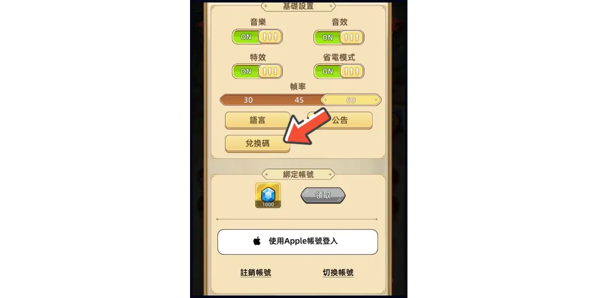 4、點選【兌換碼】