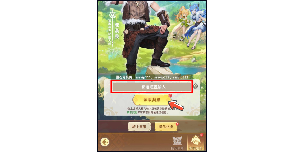 虛寶兌換方式:登入遊戲並將角色練至35等後,點擊左上角【福利】> 點擊右下角【客服相關】> 點擊【禮包兌換】>輸入虛寶序號後,點擊【領取獎勵】。【虛寶序號使用教學】