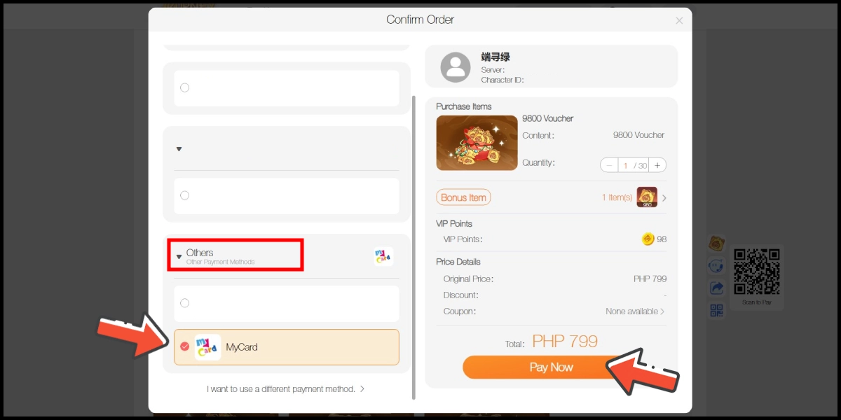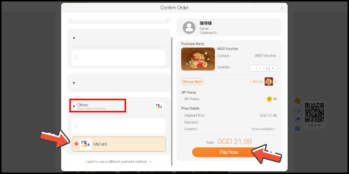 Select MyCard in the Others tab as your payment method, then click the Pay Now button.