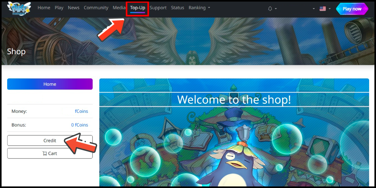 Klik Top-up pada menu di bagian atas website top up, lalu klik Credit.