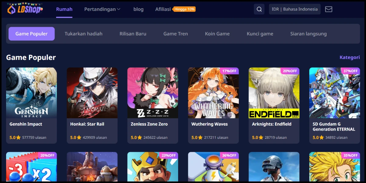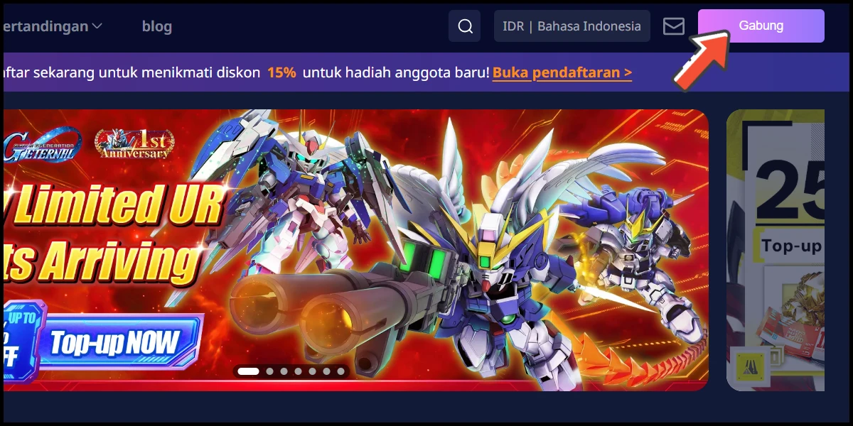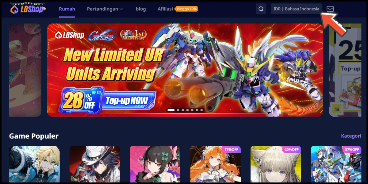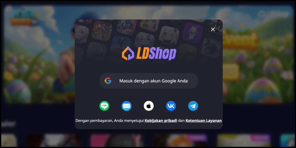 Silakan Menuju ke halaman top up, lalu klik tombol Gabung untuk login ke akun LDShop Anda.