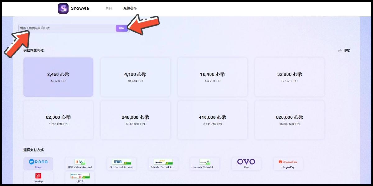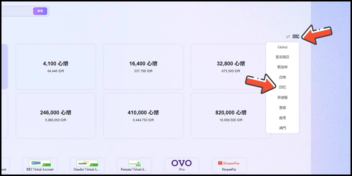 Silakan Menuju ke halaman top up, pastikan wilayah pembayaran Anda adalah 印尼 (Indonesia).