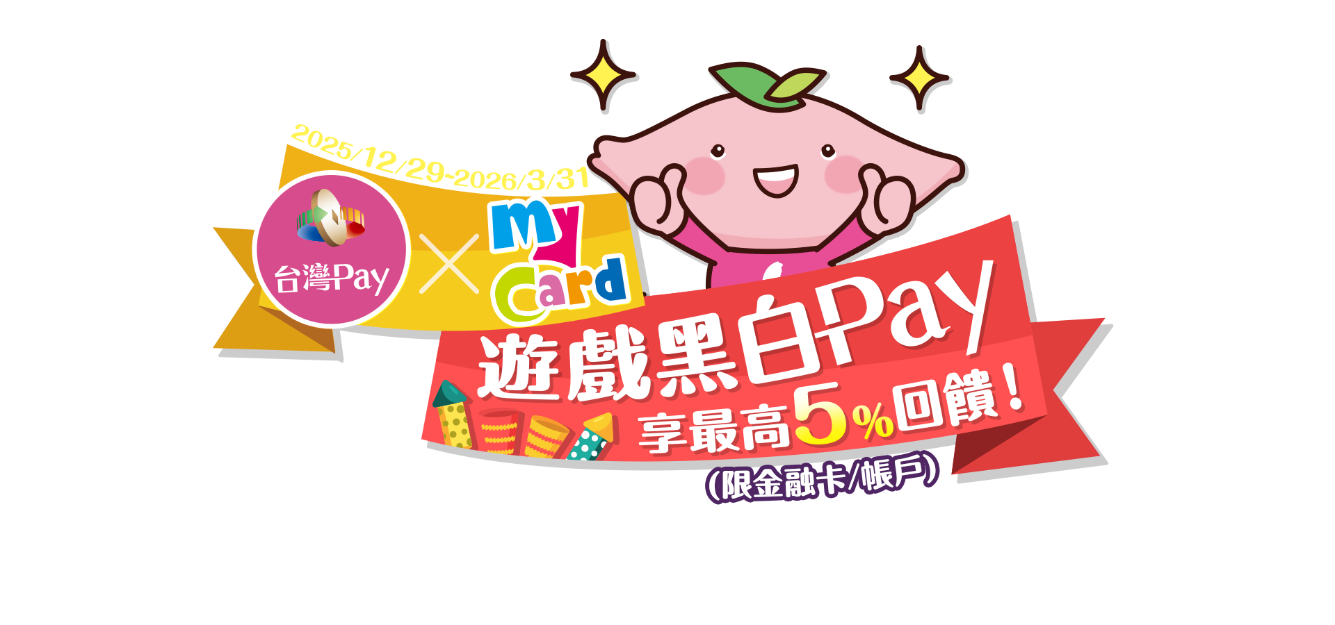台灣Pay x MyCard遊戲黑白 Pay,享最高 5% 回饋!