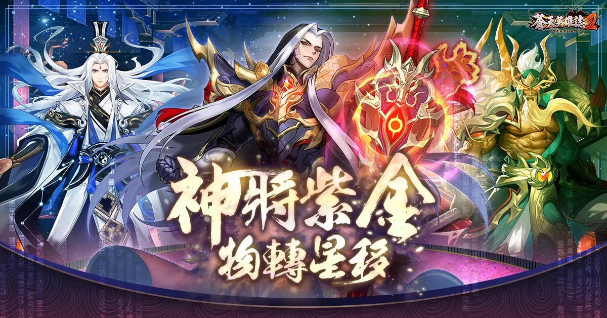 為慶祝《蒼天英雄誌2》推出「神將紫金 物轉星移」改版,遊戲內舉辦多項活動邀請玩家一同征戰三國,並釋出大量資源幫助玩家想贏哪一國、就贏哪一國!