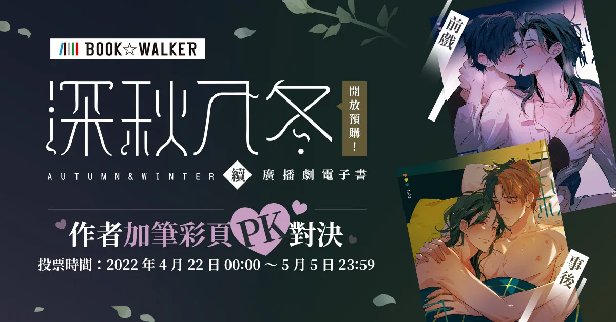 2022/04/22~2022/05/05 BOOK✩WALKER 特別企劃《《深秋入冬》作者加筆彩頁PK對決》