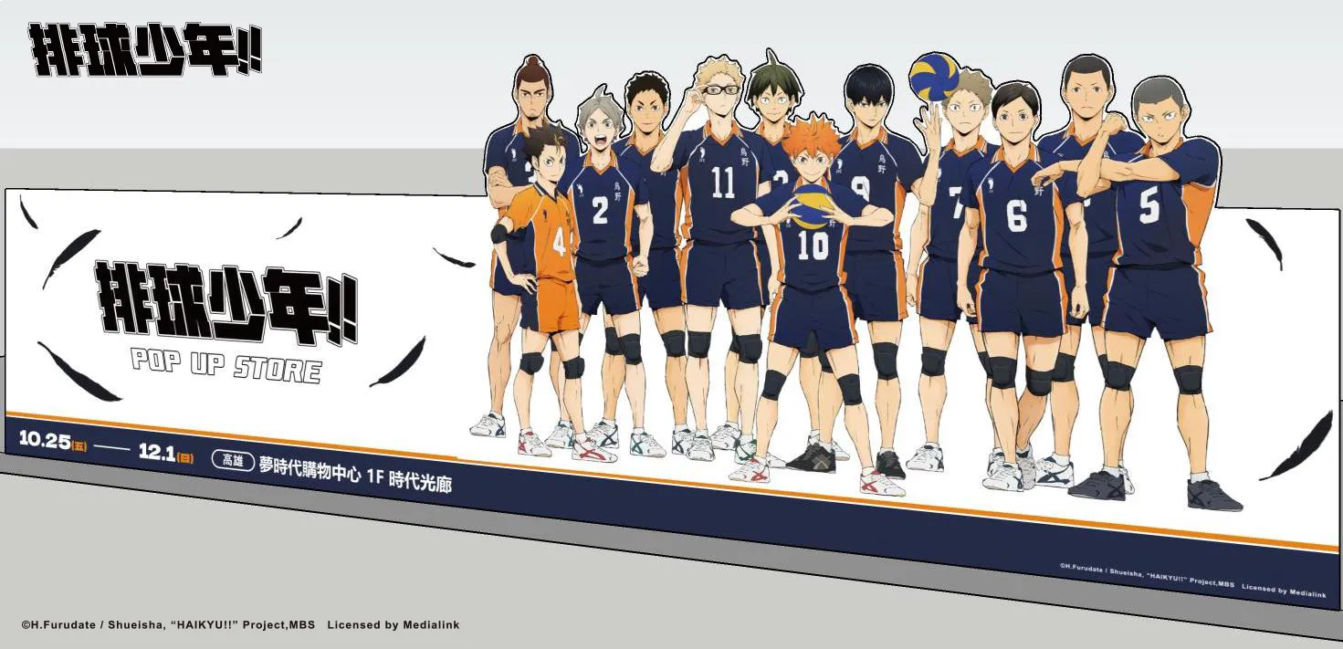 南部的排民請注意!羚邦集團正式授權的《排球少年!!》快閃店10/25-12/1高雄夢時代購物中心1F時代光廊登場啦!現場七大拍照打卡點就從「烏野高中排球隊」開始拍,高一到高三全員就位,氣勢十足等你來拍,還有「球員角色牆」集結四個球隊,多達十五位角色讓你拍個過癮,更有化身貓咪、貓頭鷹、狐狸的「小動物打卡牆」也是必拍!快閃店更推出超過百款新品周邊,從有十款動畫經典劇照的「劇照壓克力磁鐵」,到舒適好穿的「小動物T-shirt」,再到低調時尚排民必備「漁夫帽」,烏野、音駒、稻荷崎三校「大立牌」也不能錯過,排民們準備好衝場了啊!