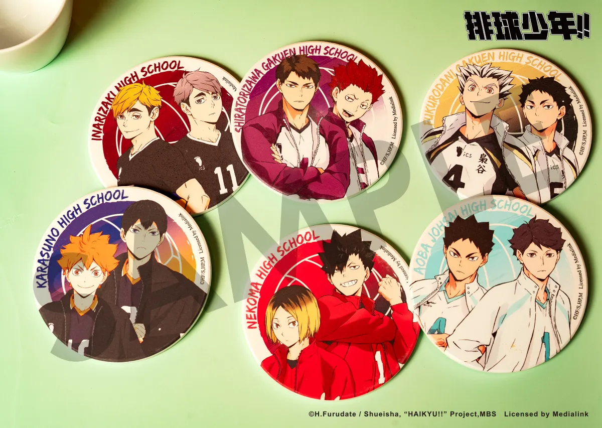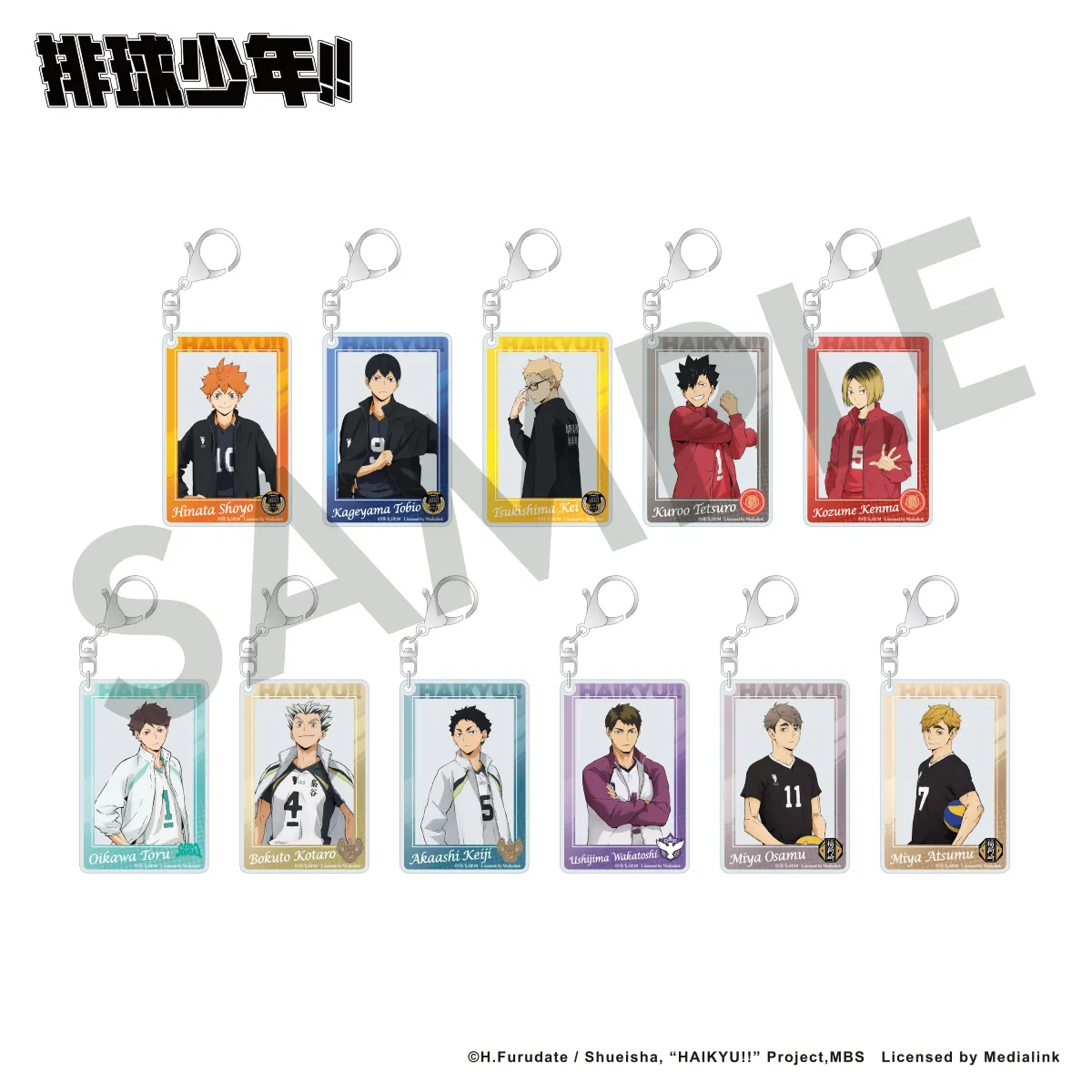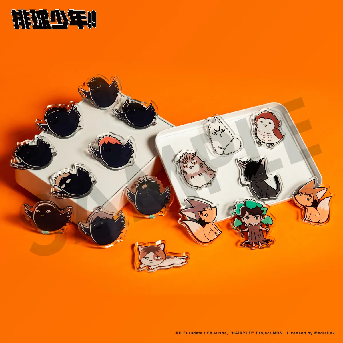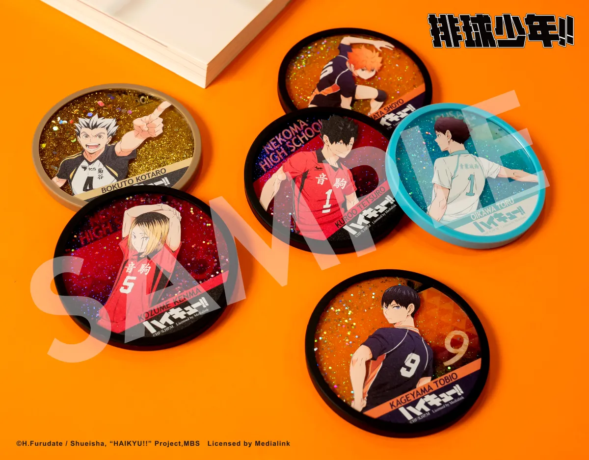盲抽「壓克力磁鐵」多達十款動畫劇照,心臟爆擊的西谷和日向、落淚的北信介、充滿自信的菅原、專注於球場影山,抽到哪一款都超級喜歡!吸水就用「陶瓷杯墊」雙人組圖樣日向和影山、黑尾和研磨、及川和岩泉、牛島和天童、宮侑和宮治共五種選擇,一次擁有兩個角色超級物超所值啊!球隊團魂爆發烏野、音駒及稻荷崎的「大立牌」每款都有各隊的重要角色,叫人怎麼能不愛?閃亮亮的「流沙杯墊」有日向、影山、研磨、黑尾、及川及木兔,搭配各自球衣號碼共六種款式,喜歡的角色買就對了!「透風卡鑰匙圈」則有影山、月島、研磨、及川、牛島及赤葦等多達十一種角色款式,牢固的金屬扣環設計讓你可以安心掛在包包帶出門!