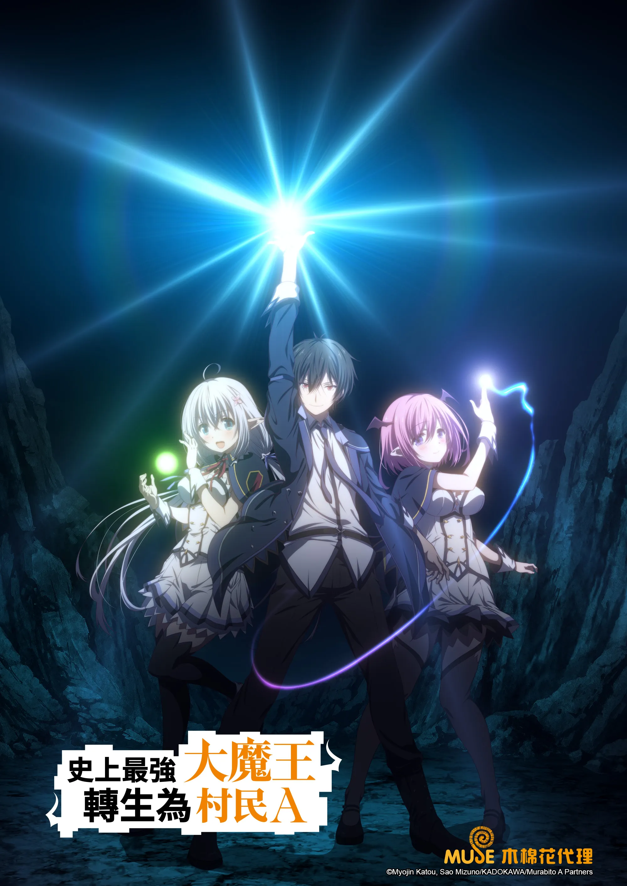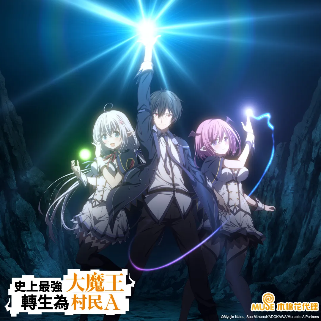 《史上最強大魔王轉生為村民A》名留神話史上最強的「魔王」瓦爾瓦德斯因自身太過強大而變得孤單,因此嚮往平凡的生活;為此他轉生到數千年後的世界,成為了不起眼的村民A亞德.梅堤歐爾。但因轉生後的世界其魔法文明衰退,魔法本身也已經劣化,亞德不得不和青梅竹馬伊莉娜一起進入魔法學園就讀。在學園裡的亞德即使再怎麼否認自己的特別,也藏不了破格的實力;對他懷抱敬畏之心的人、向他求愛的人絡繹不絕!加上過去曾讓世界陷於恐怖之中的「魔族」開始暗地行動,昔日的「魔王」能夠順利過著安穩平凡的人生嗎?