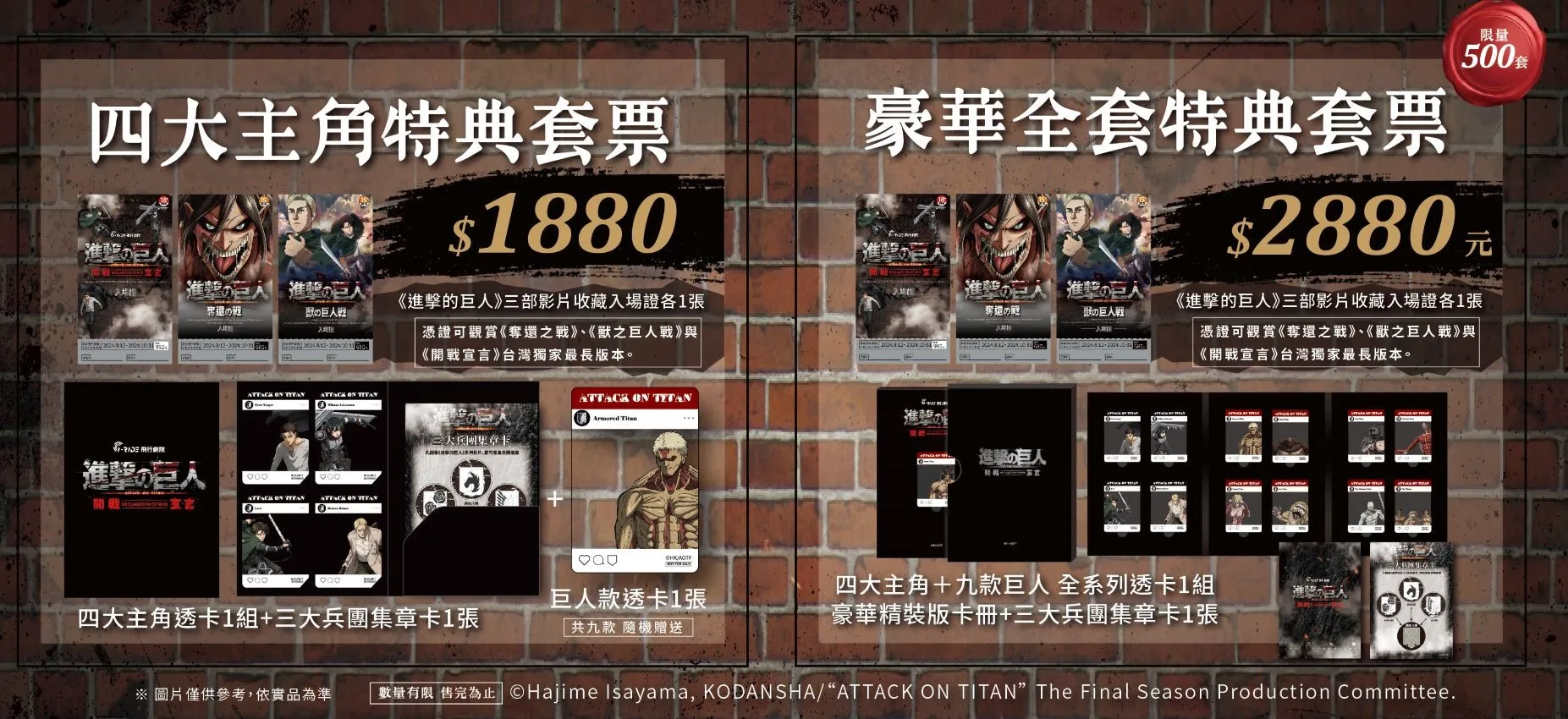 為了讓粉絲們可以收藏到喜歡角色的周邊,i-Ride飛行劇院這次推兩大組合套票。7/25(四)開始在「2024台灣國際電玩電競產業展」、KKday、Klook除了可以預購到「四大主角特典套票」之外,「豪華全套特典套票」更是只有在「2024台灣國際電玩電競產業展」獨家首賣。除了可以獲得豐富的特典內容(請見上圖),還可以額外得到《進擊的巨人:開戰宣言》8分鐘搶先看體驗資格!非常超值的好康、大家不要錯過了!