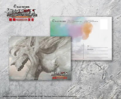 此外,從8/1(四)開始,粉絲們到現場拍照、打卡至個人IG,就可以獲得「來吶,你拿啊」面紙包,如果有在現場填寫問券,還可以再加贈《進擊的巨人:開戰宣言》限量明信片!有參加活動的朋友們,記得要到櫃檯跟工作人員領取喔!