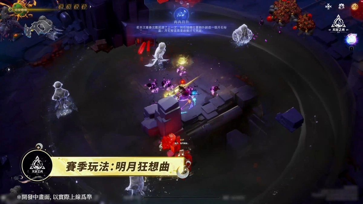 SS12賽季玩法【明月狂想曲】將回歸最爽快直接的局內刷圖玩法,玩家可在異界地圖中遭遇月石塑像群,使用賽季互動按鈕彈奏月輪將範圍內的塑像喚醒,擊敗它們即可獲得豐厚掉落物,每一次性喚醒的塑像越多,更能給予更高的掉落數量加乘!