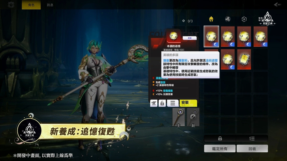 全新賽季養成『追憶復甦』能給予玩家前中期的角色加強,以及後期玩家顛覆性的流派構築改變。在賽季玩法中可獲得特殊的打造道具,使用道具可對英雄追憶進行「復甦」打造,不只可以增加追憶的基礎數值、提升詞綴等階、附加隨機特殊詞綴外,更可在至臻追憶上打造一條最為強力的「初生」詞綴。