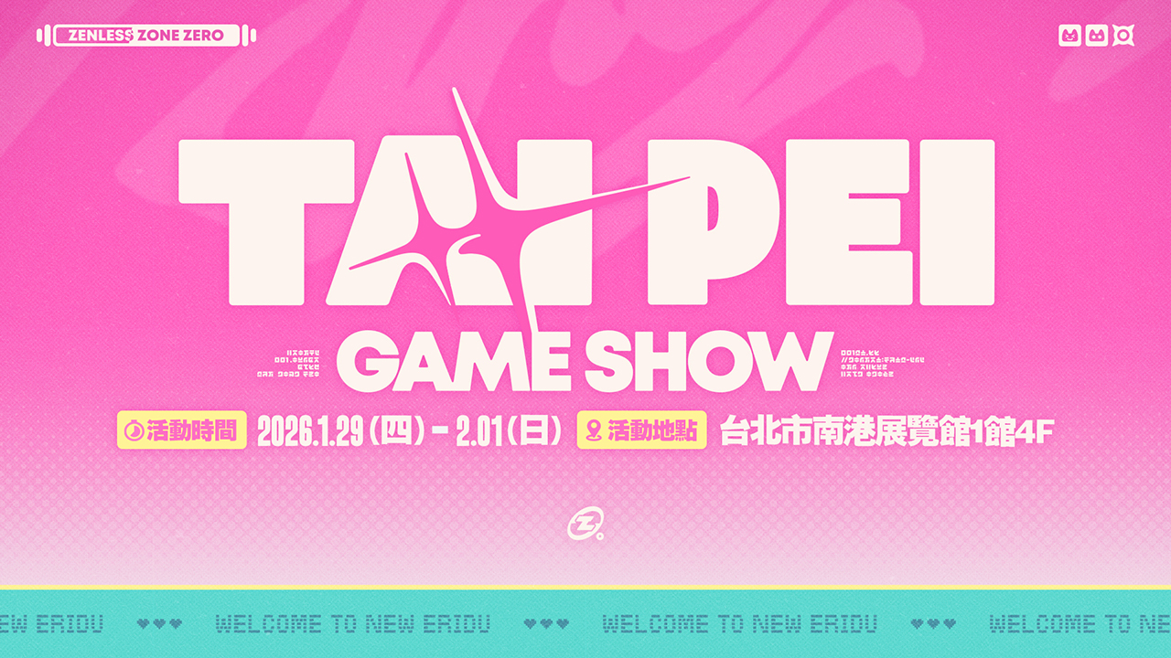 由NIJIGEN代理發行、HoYoverse開發的3D角色扮演類動作遊戲《絕區零》正式宣佈:將於2026年1月29日至2月1日參加於台北南港展覽館舉辦的「2026台北國際電玩展」!值此全新2.5版本「微光引燈時」即將於12月30日(二)隆重上線、首位雙形態虛狩葉瞬光正式登場之際,官方將為繩匠們打造獨具特色的主題展區,提供豐富的關卡挑戰與舞台活動。此外,《絕區零》也將首度於台北國際電玩展推出專屬排隊通道,邀請繩匠準備親臨體驗!更多展區內容與周邊資訊將陸續公開,敬請繩匠關注。