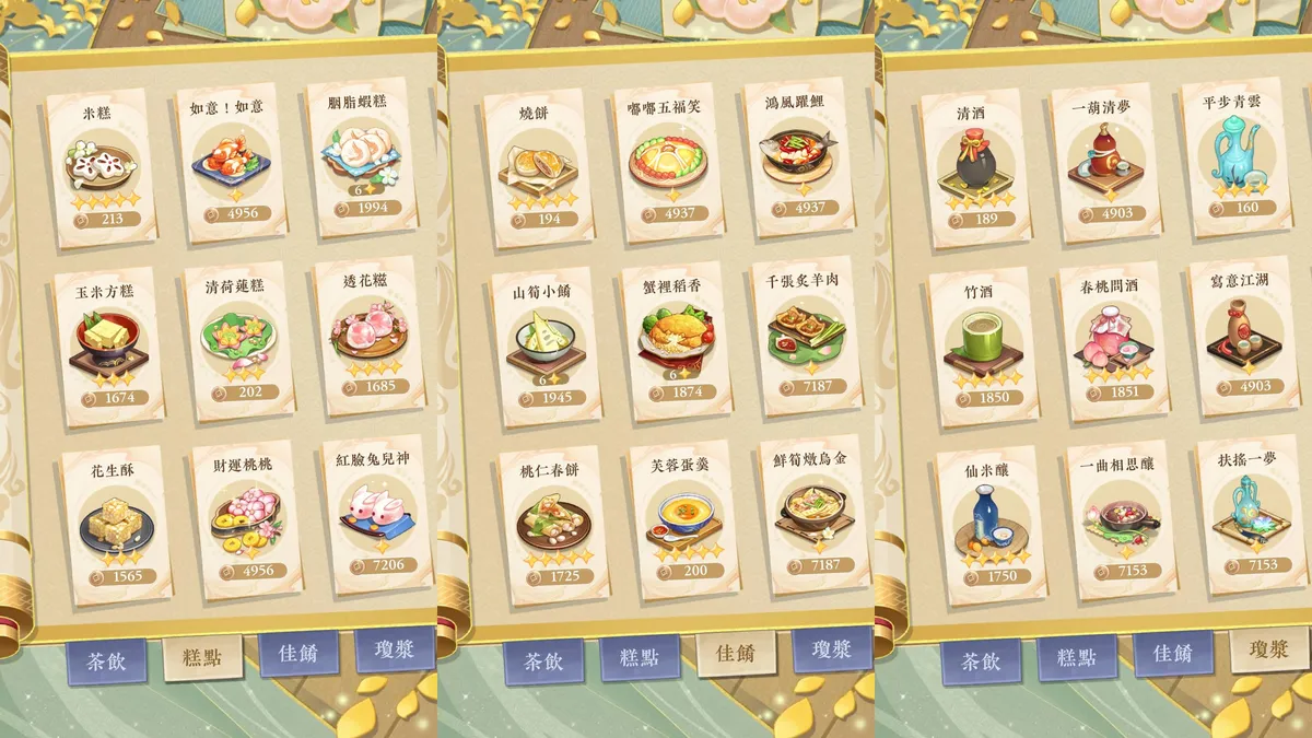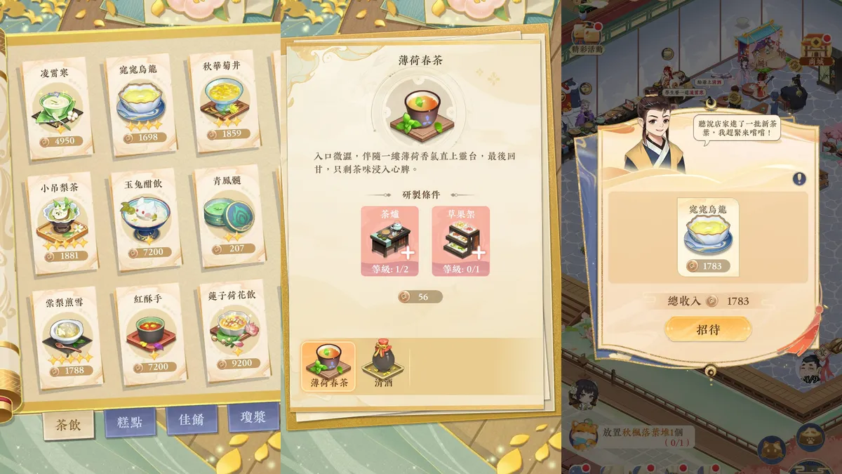 玩家可以研發各種茶飲、糕點、佳餚和瓊漿,會有喜歡的客人進行點餐